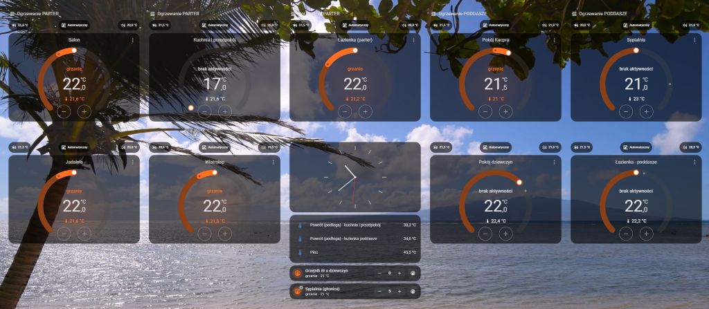 Dom jednorodzinny - automatyka oświetlenia LED (w tym RGB), markizy balkonowej, systemu alarmowego, monitoringu wizyjnego, centralnego ogrzewania, ogrzewania wody, fotowoltaiki oraz kilka innych, ciekawych integracji