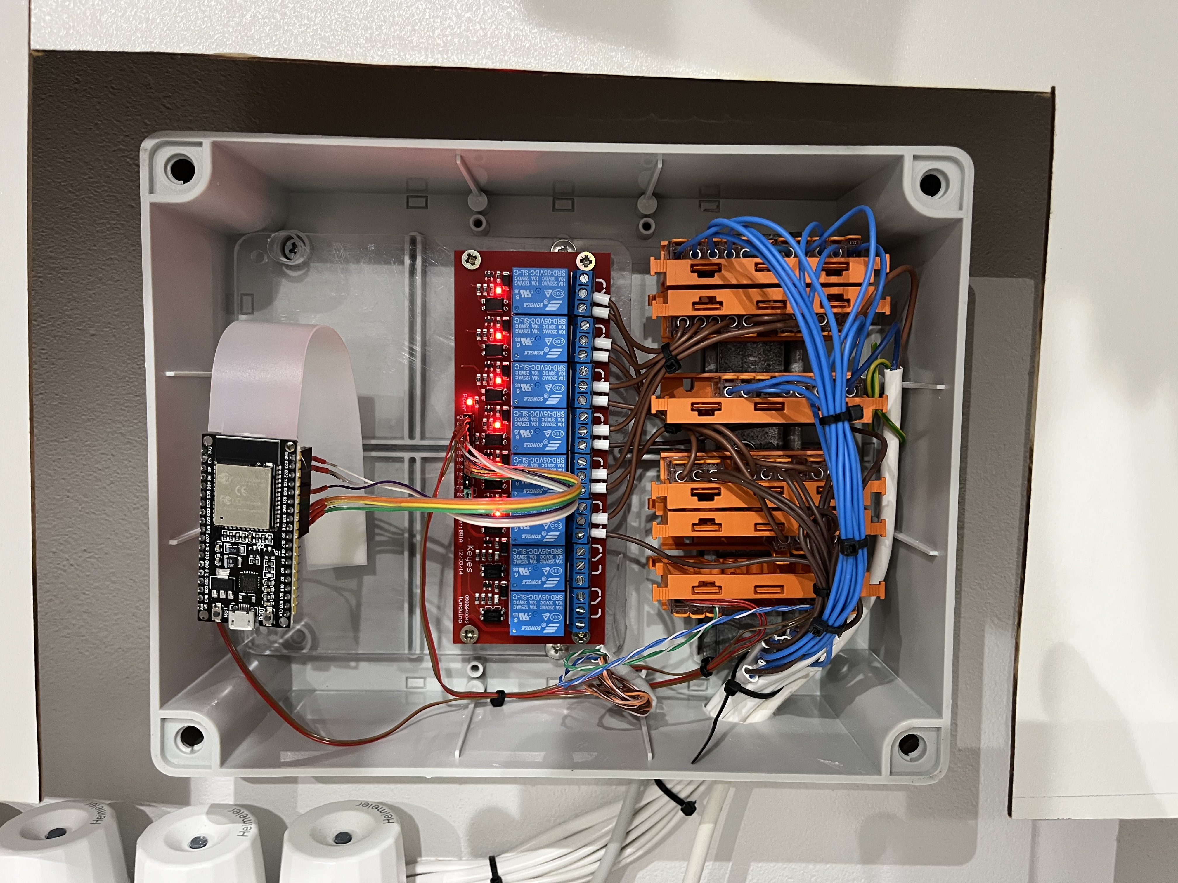 Rozdzielacz ogrzewania podłogowego + głowice EMOT + sterowanie (parter)